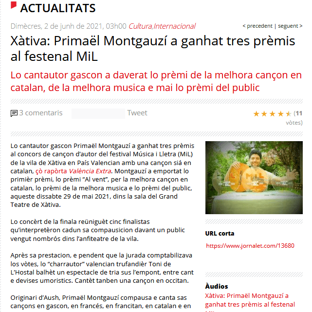 Dens la premsa ! / Dans la presse ! Posted byprimaelmontgauzi02/06/202116/06/2021Posted inUncategorized València Extra El Periòdic Jornalet Portal de Xàtiva Partejar : Click to share on X (Opens in new window) X Click to share on Facebook (Opens in new window) Facebook Like Cargament... Related