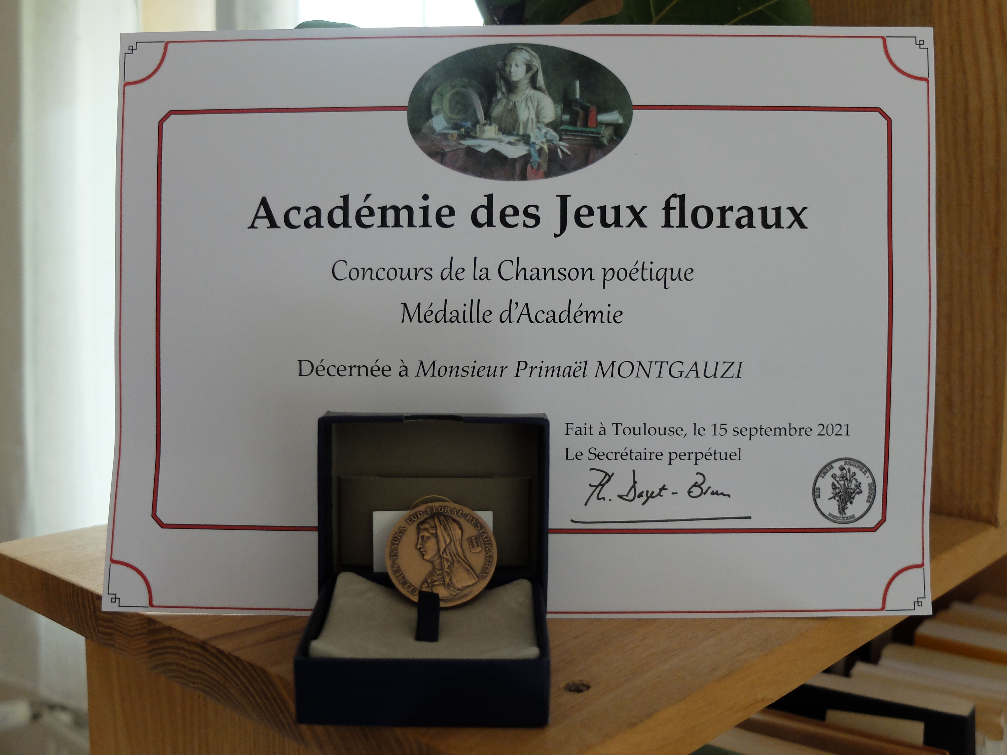Médaille de l’Académie des Jeux Floraux 2021 Posted byprimaelmontgauzi02/10/2021Posted inUncategorized Partejar : Click to share on X (Opens in new window) X Click to share on Facebook (Opens in new window) Facebook Like Cargament... Related